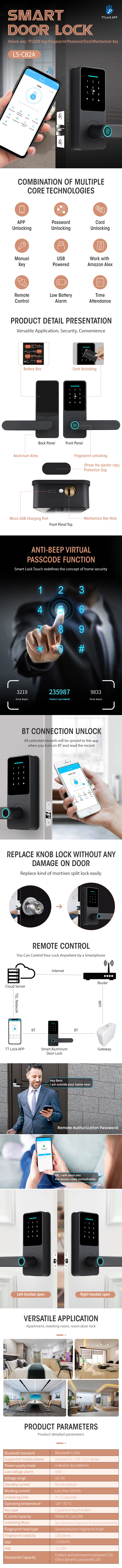 [Keyless Smart Locks]- 5 unlocking ways: TTLock app+keyboard+fingerprint + smart card+Physical key