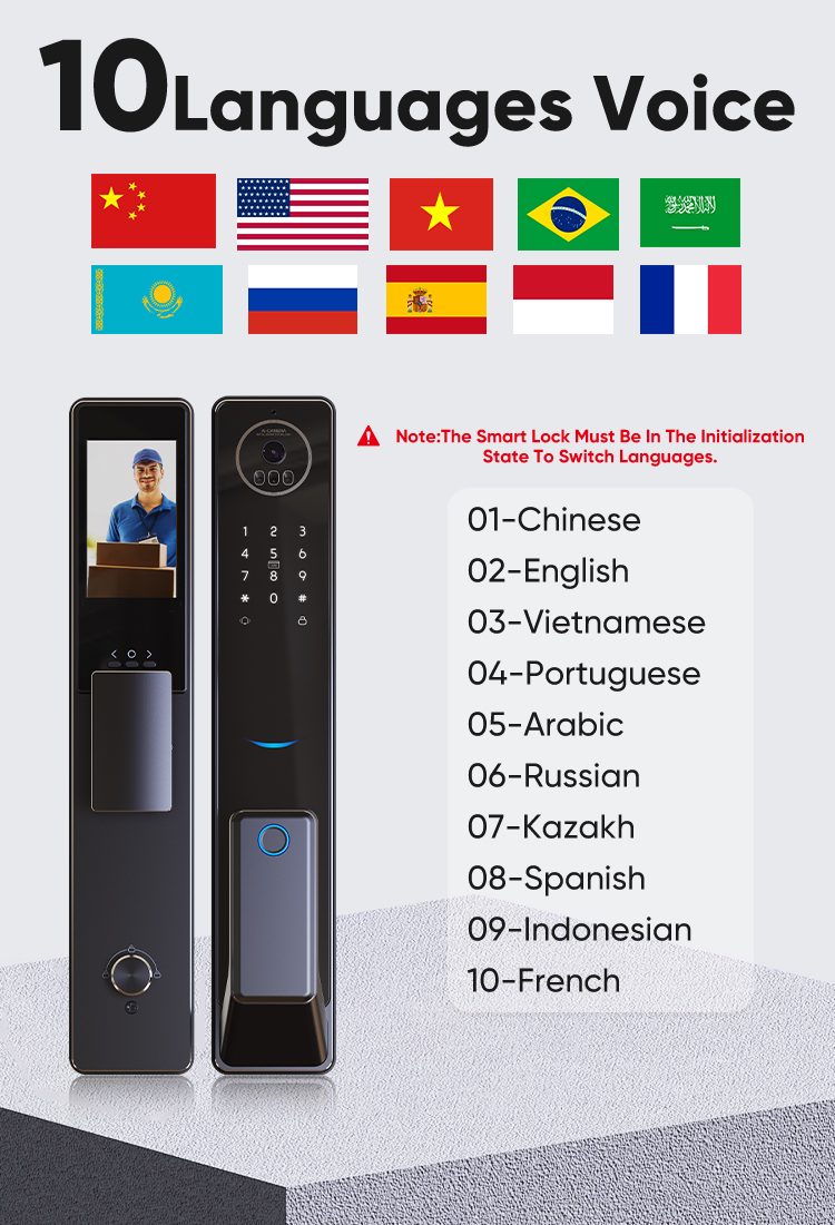 2.Visual intercom with Peep hole: you can see who is in front of your doorremotely by phone or at home by screen on lock.