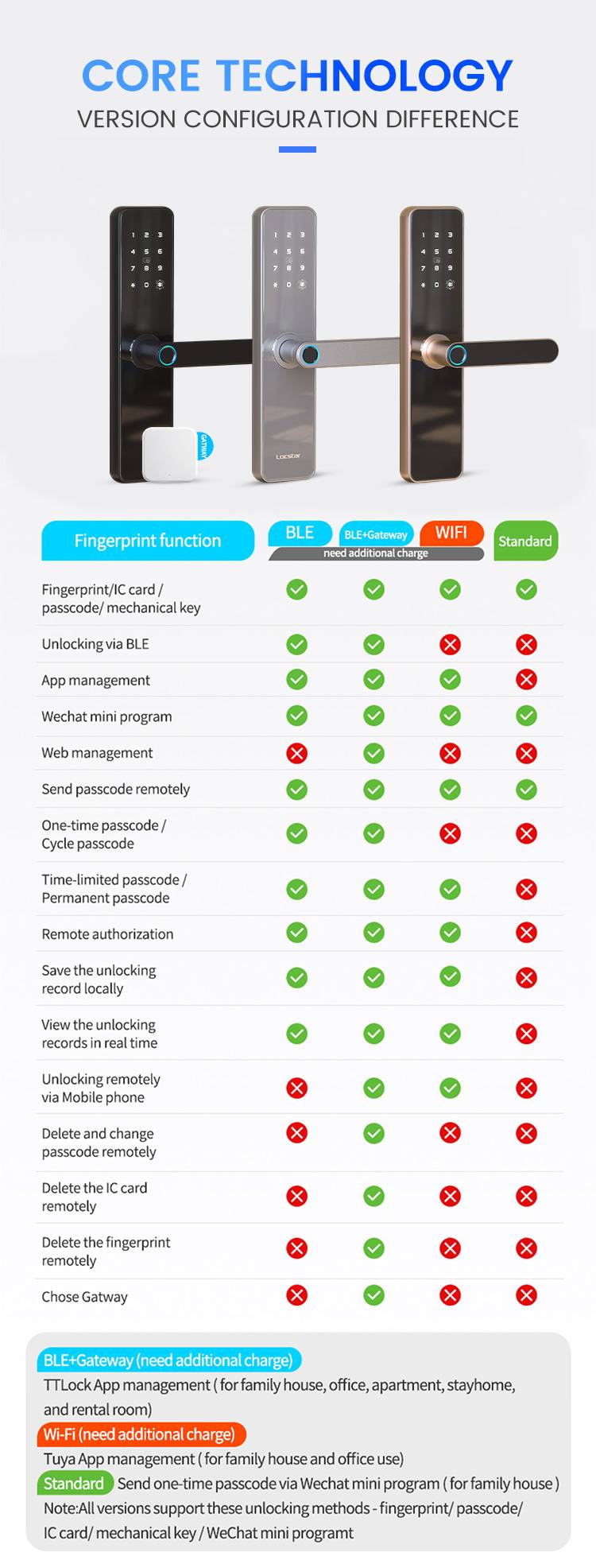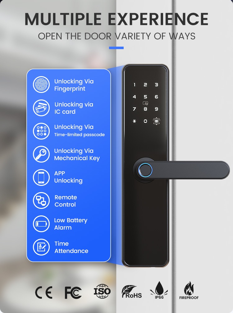APP/ fingerprint/ password/IC card/key/BluetoothMaterial: