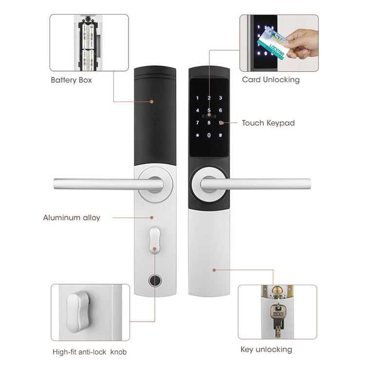 LCOSTAR smart hotel lock(LS-8058L-TT),can unlock by key card and mechanical key,password. support different management requirement, such as building card/floor card/maid zoon card management/ foreman card/front desk card and so on. also supply full set accessories to work together, encoder/energy saver/printing card/data collector.