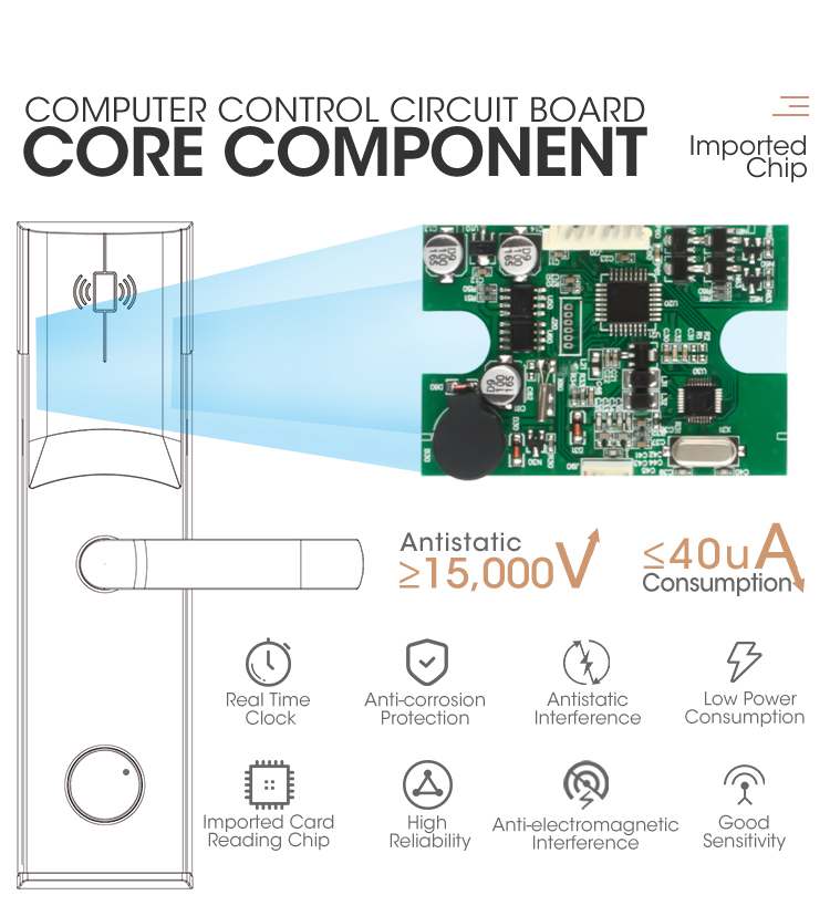 9. Hotel software interface with other PMS (API / SDK can be provided),Future proof re-programmable FL .ASH RAM lock memory.
