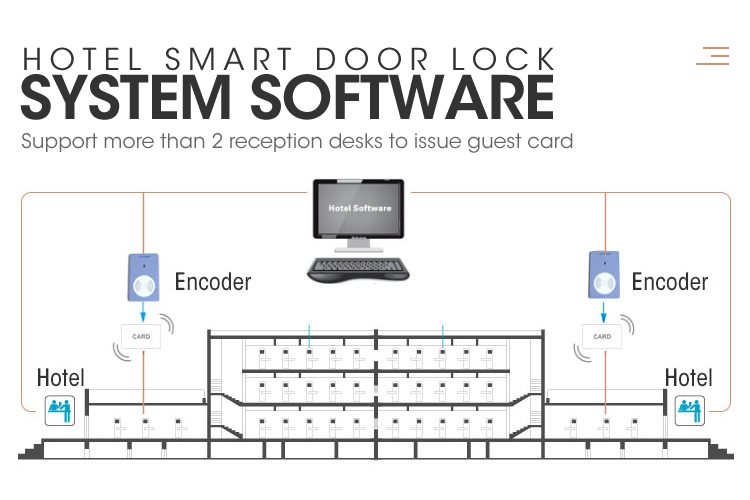 8. Hotel locking system includes: hotel locking software, encoder, RF card, energy saving switch, data collector, click to get more information about Hotel smart door lock system.