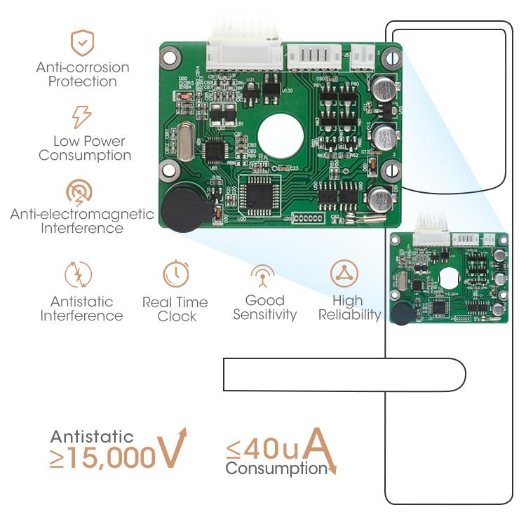 LS-M102 mifare door lock is split lock,high end star hotel,slim and extraordinary design.Philip's mifare S50 card to realize access control for guest room,common areas.