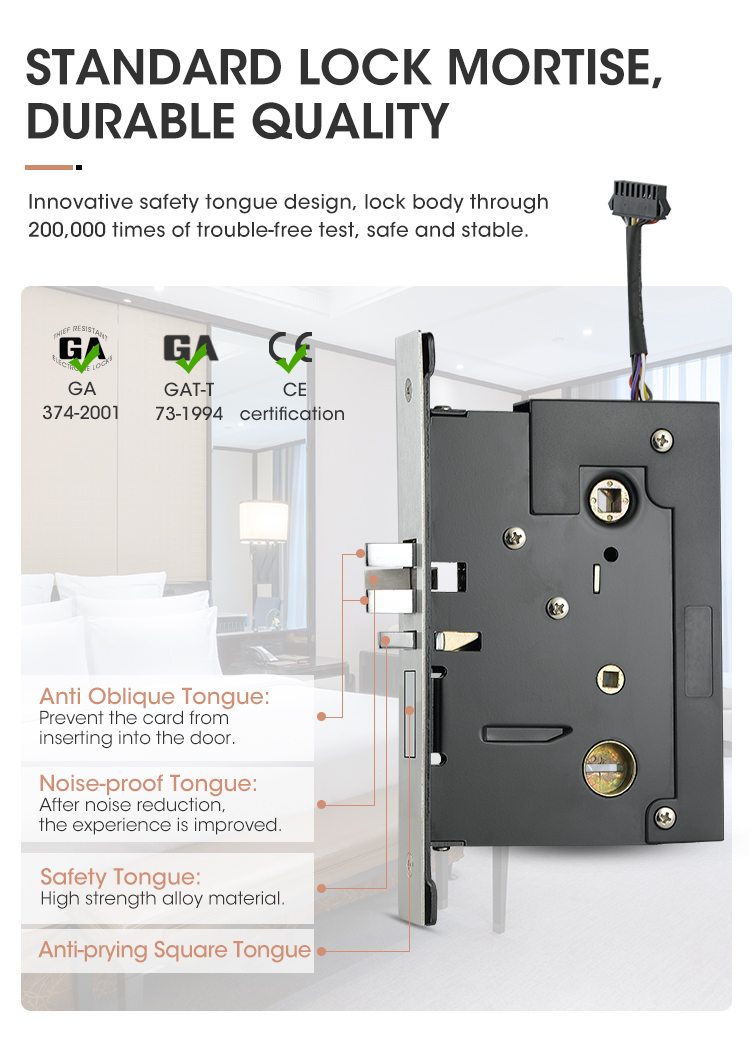 8015 keyless hotel door locks are locstar small but functional powerful lock. Optional single latch or 9500 ANSI mortise. Single latch is easy to install or renovate,the knob lock hotel could be upgraded into 8015-rfid card lock without drilling any extra hole