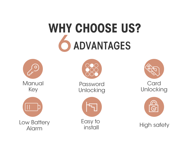 Ls-8015 digital lock is low cost compared with Mifare card or big steel door lock.but unique handle design.6268 handle design can hid the mechanical key hole from break-in damage,6226 handle design let the customer can easily change the left/right handle direction without any extra equipment.