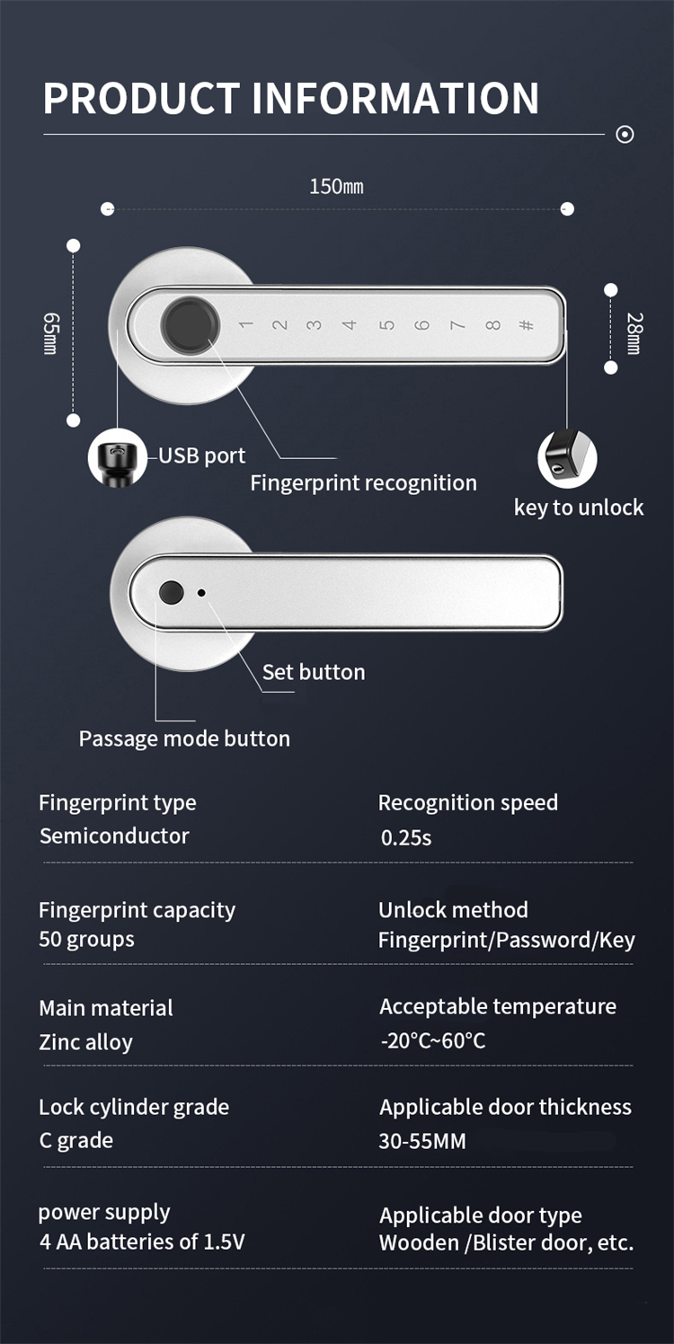 The handled smart lock detail discription: